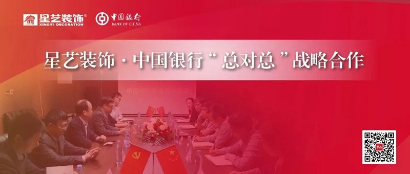 2017年11月17日下午,中國銀行總行領(lǐng)導(dǎo)到星藝集團參觀交流,推動“總對總”戰(zhàn)略合作,全面加強和落實中國銀行?星藝裝飾家裝分期業(yè)務(wù)合作。