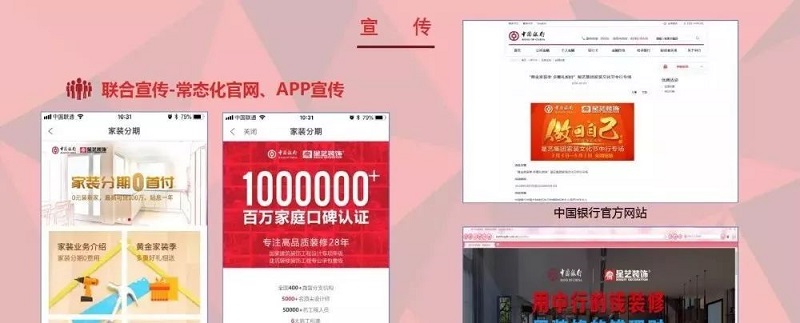 為全面落實和加深中國銀行與星藝裝飾集團在家裝家居金融方面合作,實現(xiàn)互利共贏,中國銀行聯(lián)合星藝裝飾針對具有家裝、家居需求的優(yōu)質(zhì)客戶推出家裝分期業(yè)務(wù)合作。為此,中國銀行為星藝裝飾推出客戶私屬定制家裝分期業(yè)務(wù),以便于星藝客戶用于支付家庭裝修及家具、家電等相關(guān)衍生消費需求,并在約定的時間內(nèi)采取分期償還方式按期償還裝修貸款。