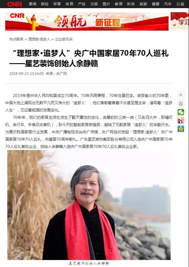 星藝裝飾入選央廣中國家居70年70人巡禮首批企業(yè)