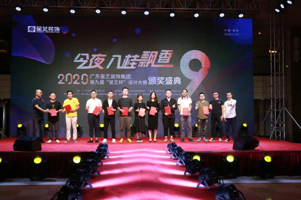 9月24日晚,由廣東星藝裝飾集團(tuán)有限公司主辦,星藝設(shè)計協(xié)會、星藝裝飾文化傳媒中心承辦,星藝集團(tuán)材料中心、星藝裝飾桂林公司協(xié)辦,德高(廣州)建材有限公司、江蘇永鼎盛達(dá)電纜有限公司、西蒙電氣(中國)有限公司、日豐企業(yè)集團(tuán)有限公司、廣州立邦涂料有限公司贊助的2020第九屆“星藝杯”設(shè)計大賽頒獎盛典在桂林盛大舉行。來自星藝裝飾全國各單位的近300名設(shè)計總監(jiān)和獲獎?wù)邊⒓宇C獎盛典。