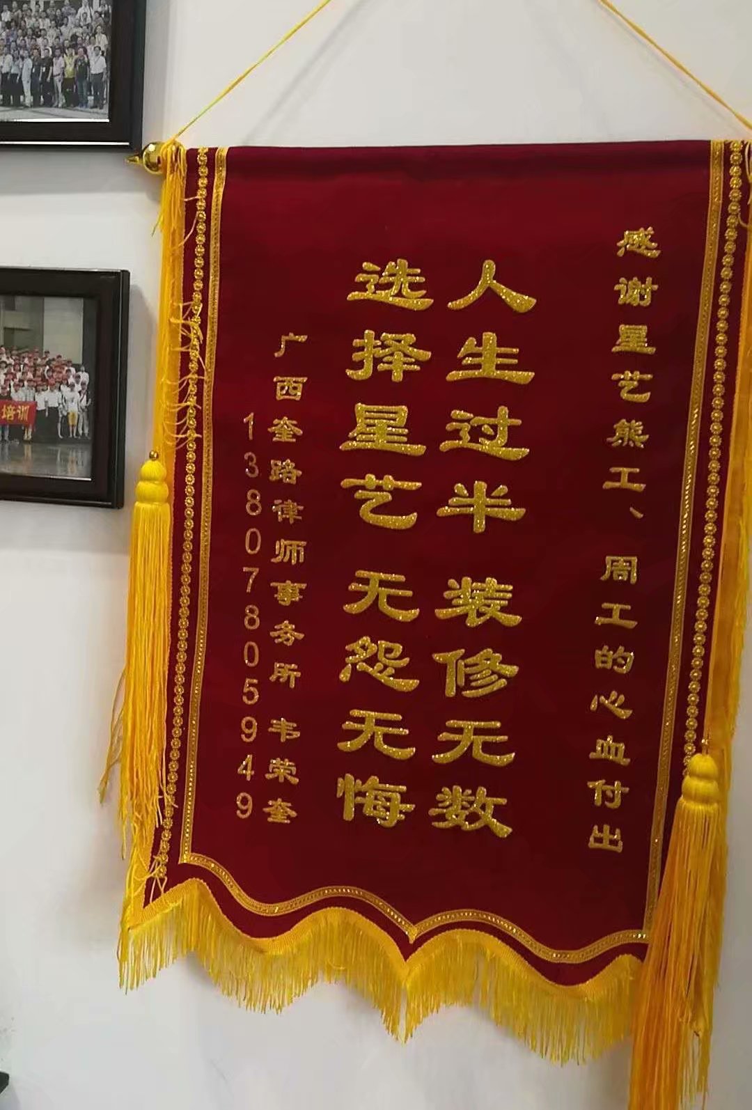 2018年2月6日業(yè)主送來錦旗:“人生過半,裝修無數(shù)。選擇星藝,無怨無悔?!?br />