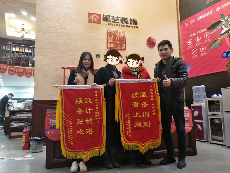 2018年12月15日,兩位溫莎北郡業(yè)主送來錦旗兩幅,稱贊設計師羅靖華,李偉杰,監(jiān)理聶青服務貼心 設計精湛 質量上乘 服務周到。
