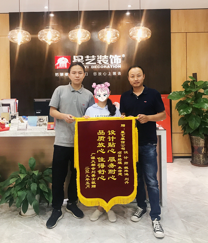 廣源大都會業(yè)主劉女士為感謝項目經理朱澄建和設計師姚煒鴻、劉丹,專程來到星藝富安居設計中心送錦旗,感謝項目經理和設計師的認真負責。錦旗內容:品質放心,設計放心,住得舒心,服務耐心。認真工作一定會獲得認可的,我們一定還會繼續(xù)努力提升自己的工作服務。