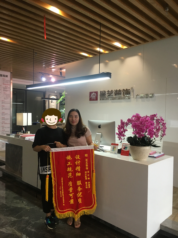 2019年9月1日,龍堤路業(yè)主送來錦旗一幅,星藝裝飾設計師彭麗萍接受錦旗,錦旗內容:施工規(guī)范 質量可靠 設計精細 服務優(yōu)質
