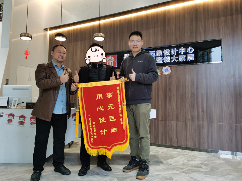 2020年十二月二十五日,圣誕節(jié)當日,業(yè)主黃先生將大紅錦旗送到星藝裝飾五象設(shè)計中心,以感謝星藝裝飾設(shè)計師曹希用心設(shè)計 事無巨細 ,這是對我們工作的極大認可和肯定。在今后的工作中,我們將再接再厲,堅持做客戶口碑,打造出更多的“精品工程”、“放心工程”,來回報我們的客戶。