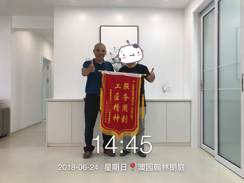 2018年6月23日,奧園瀚林朗庭業(yè)主送來錦旗稱贊廣東星藝裝飾南寧公司項(xiàng)目經(jīng)理劉國江工匠精神,服務(wù)周到。