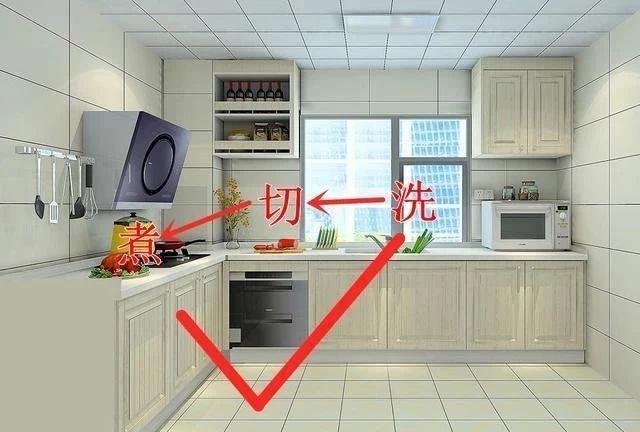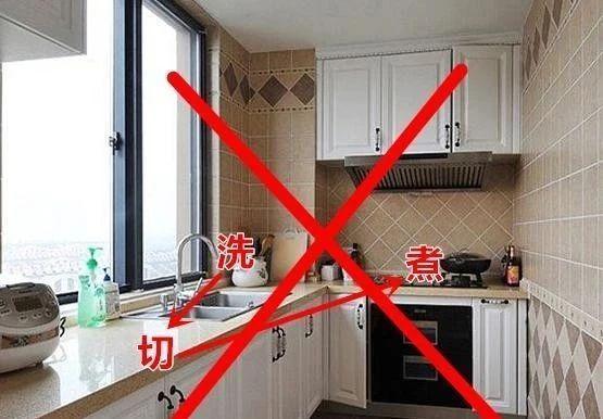 其實(shí)上圖的設(shè)計(jì)師錯(cuò)誤的,將其洗、切、煮動(dòng)線安排混亂,主婦下廚根本就非常的不順暢
