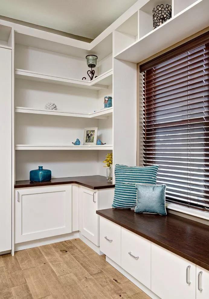 幾塊干凈清新的隔板,在房間的轉(zhuǎn)角處,L形的設(shè)計(jì)打造,加上幾個書架,專屬的辦公閱讀區(qū)域就打造出來了,更舒適,更自然,并且還可以多方活動,下雨天,坐在旁邊,喝杯暖暖的咖啡,也能感受不一樣的生活情調(diào)。