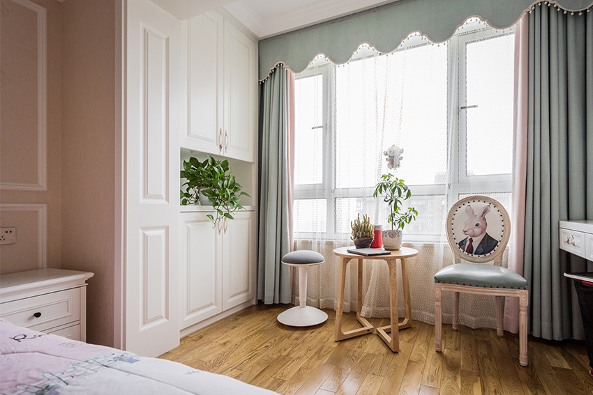 窗簾的設(shè)計(jì)也應(yīng)別具特色。色彩鮮艷、圖案活潑的樣式最佳。設(shè)計(jì)可以根據(jù)四季的變換,配上花色不同的窗簾。如在春天,窗簾可選用以綠色為基調(diào)的自然紋樣式。在明媚的夏日,可配上防日曬的彩色百葉窗等等。床上用品可繡上可愛的動(dòng)物圖形或數(shù)字英文字母等。色彩的多樣化可使兒童產(chǎn)生豐富的幻想,促進(jìn)他們智力和情感的提高。
