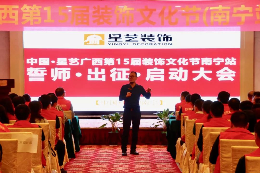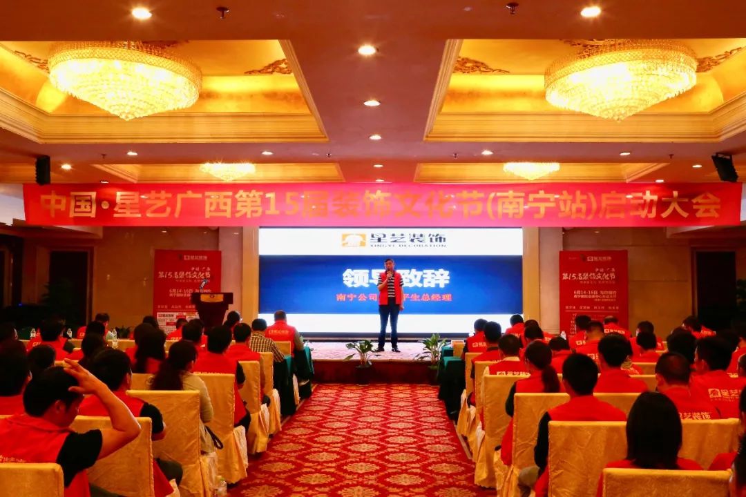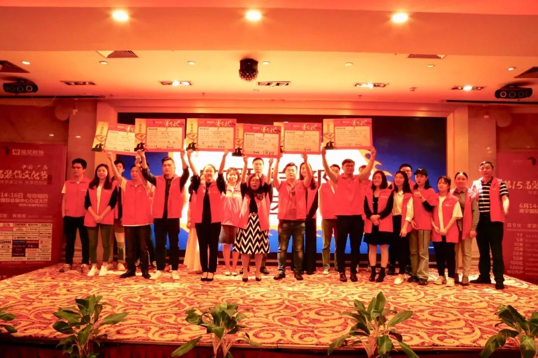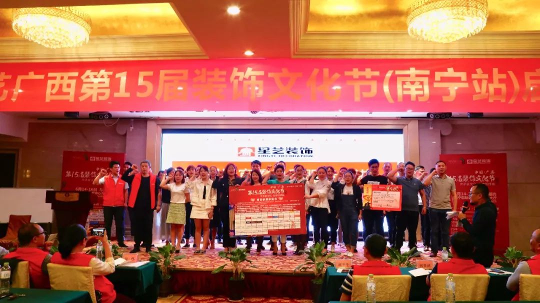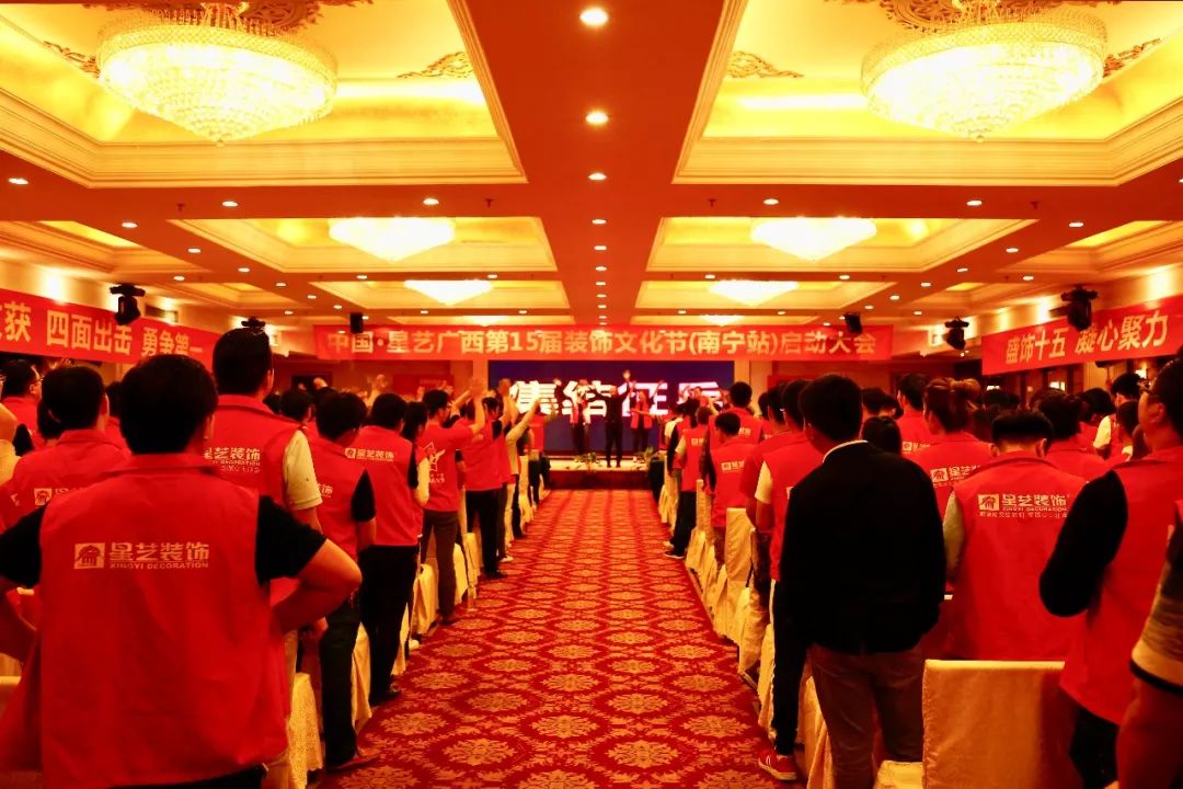 2019年4月7日,中國 ? 星藝廣西第十五屆裝飾文化節(jié)(南寧站)啟動誓師大會在南寧金旺角大酒店隆重舉行。星藝裝飾集團決策委成員、廣西區(qū)域總監(jiān)徐橘、南寧區(qū)域總經(jīng)理周平生、南寧區(qū)域設(shè)計總監(jiān)李明、參展聯(lián)盟品牌及南寧區(qū)域全體員工約五百余人歡聚一堂,共襄盛舉,為星藝裝飾連續(xù)舉辦15年的裝飾文化節(jié)活動學(xué)習(xí)攢力,簽署“軍令狀”,定目標。本次啟動大會取得圓滿成功,也預(yù)示著15屆裝飾文化節(jié)(南寧站)定將再創(chuàng)輝煌。