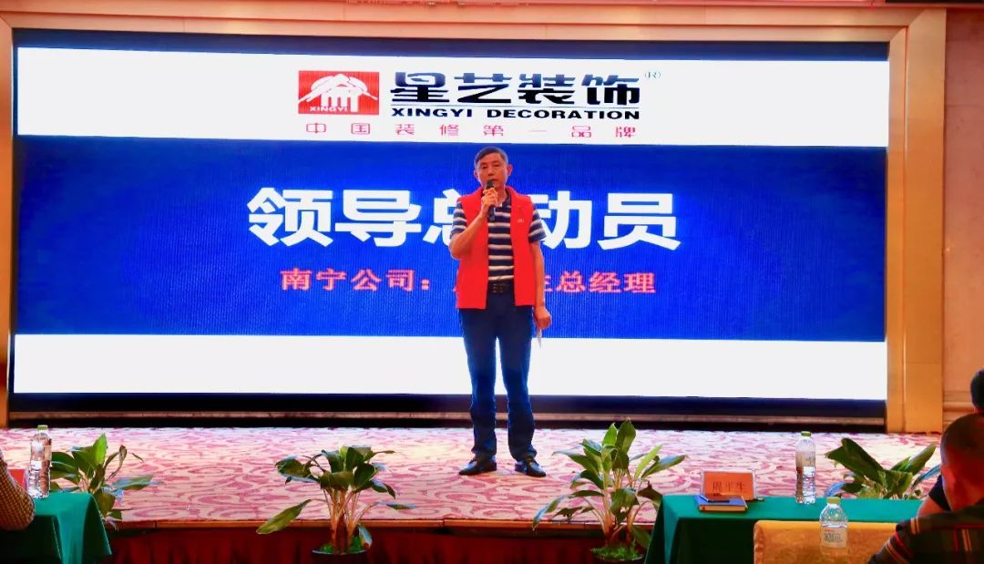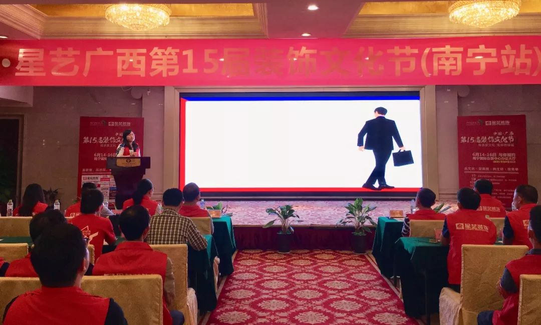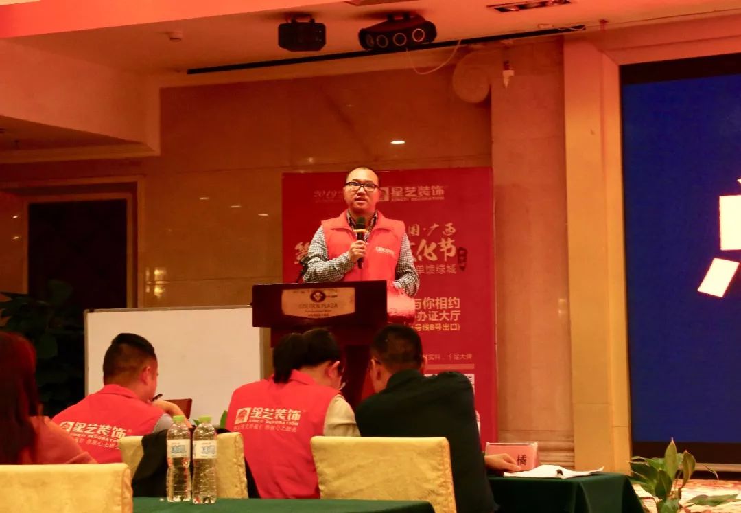 隨后,星藝南寧區(qū)域總監(jiān)李明上臺闡述十五屆裝飾文化節(jié)(南寧站)的策劃方案、優(yōu)惠細則、活動推廣、獎勵制度政策和方案,講解星藝九大家設(shè)計哲學(xué)思想、質(zhì)量和服務(wù)標準以及市場變化等。李工也不禁感慨萬千,從第一屆裝飾文化節(jié)延續(xù)至今全部參與了南寧的15屆,從第一屆的30單到十四的603單,把自已首屆簽8單的好成績放在今日相比,其實不算得什么,但這亦是證明了星藝一直在不斷強大,未來可期,勇攀高峰,相信在本屆裝飾文化節(jié)中,星藝家人們亦能取到更為耀眼的成績,再次刷新2018年的記錄。