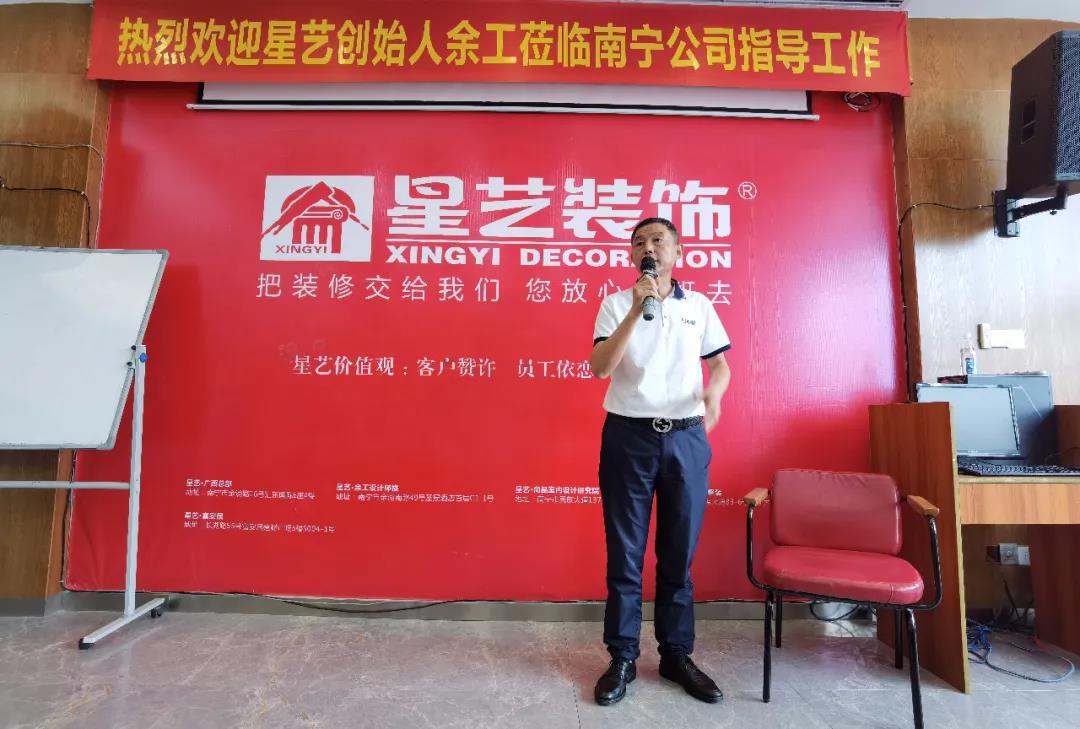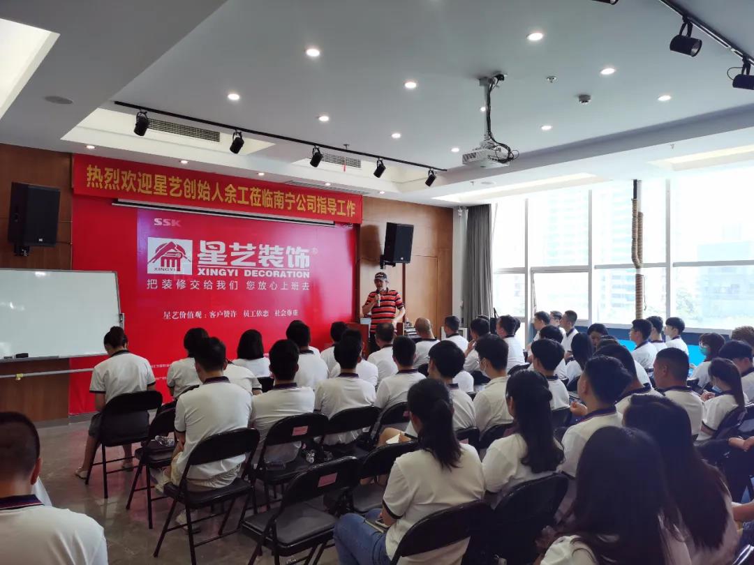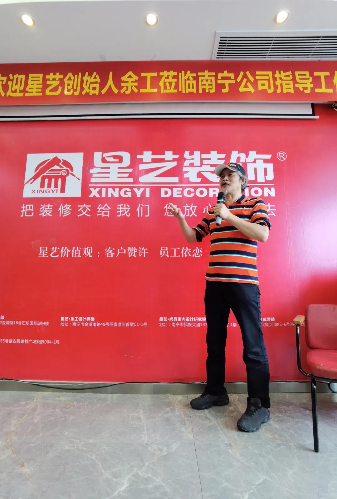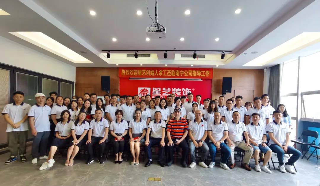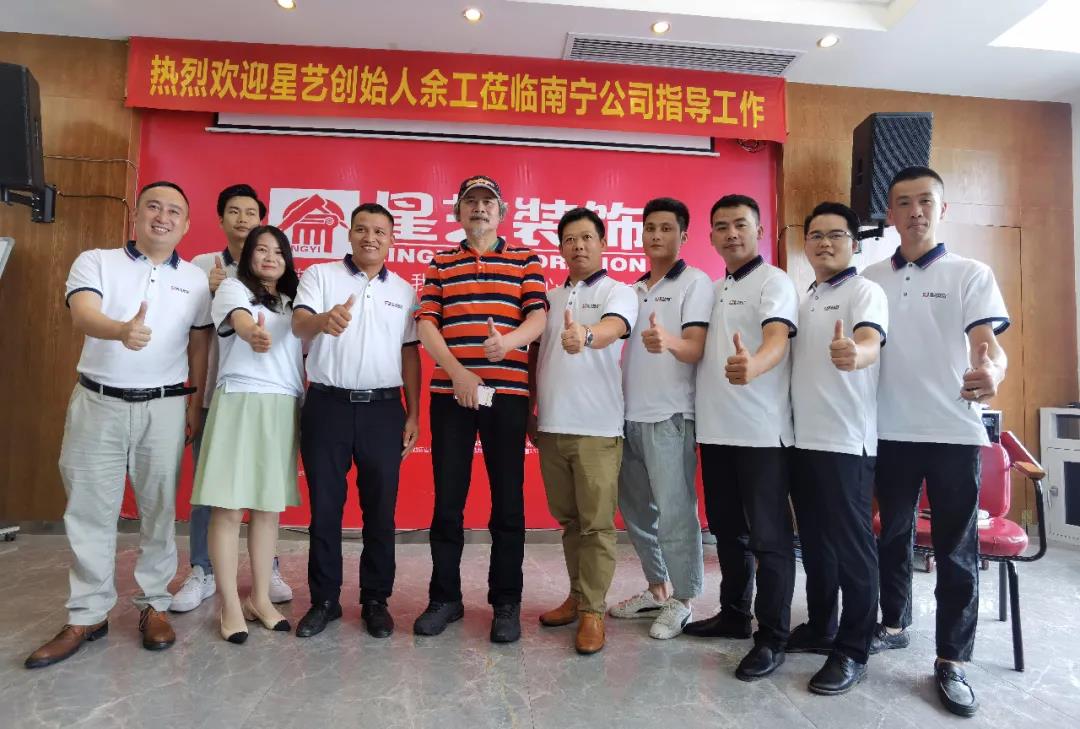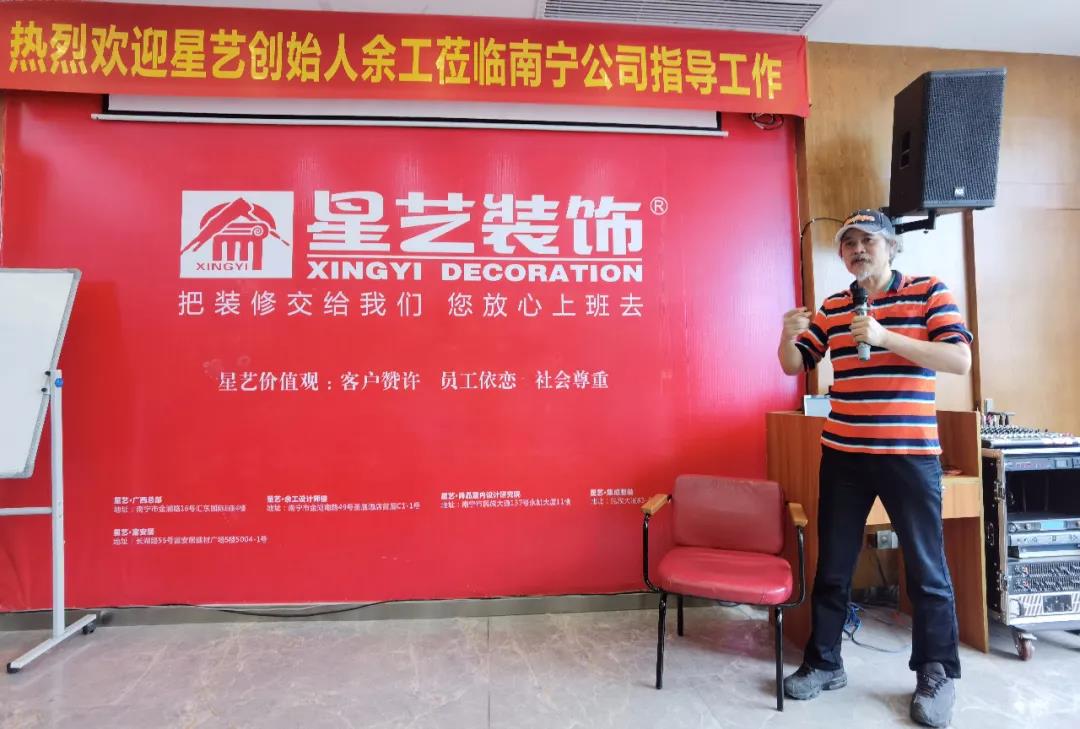 7月14日,星藝裝飾集團創(chuàng)始人余靜贛老師(下文稱余工)蒞臨廣西南寧,于星藝廣西總部會議室與南寧的星藝家人們近距離溝通交流,十分親切;在集團決策委成員、廣西區(qū)域設(shè)計總監(jiān)徐橘,星藝南寧區(qū)域總經(jīng)理周平生、南寧區(qū)域設(shè)計總監(jiān)李明等領(lǐng)導(dǎo)的共同組織下,星藝創(chuàng)始人余工現(xiàn)場為星藝南寧的家人們分享了他寶貴的設(shè)計心得。