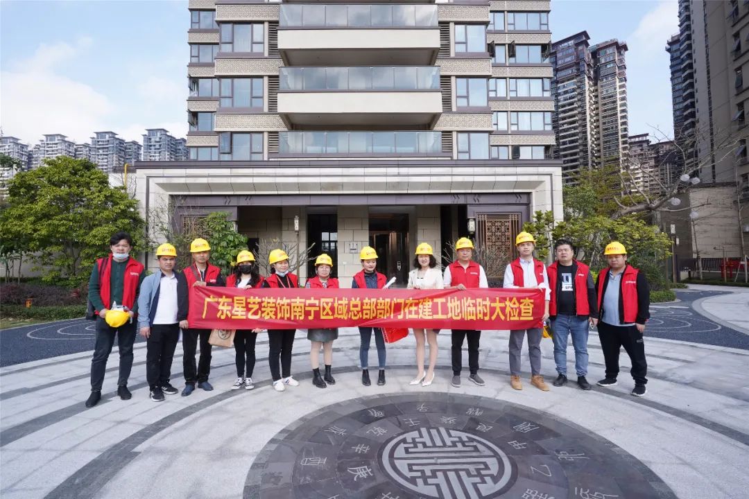 3月9日,星藝廣西總部業(yè)務(wù)部經(jīng)理謝麗萍、廣西總部營銷總監(jiān)黃銳、工程一部經(jīng)理鄒武清攜廣西總部設(shè)計(jì)三部設(shè)計(jì)總監(jiān)周兵、設(shè)計(jì)五部設(shè)計(jì)總監(jiān)楊艷、廣西總部設(shè)計(jì)二部設(shè)計(jì)總監(jiān)張旭、印象墅設(shè)計(jì)總監(jiān)熊峰、蘭瑞嚴(yán)以及客戶經(jīng)理張美玲、廣西總部市場部經(jīng)理韋娟、杜堯、胡澤恩、楊維維等人,依次對冠江墅、唐樾青山、東方尊府和山漸青別墅等多個星藝南寧在建工地進(jìn)行突擊檢查,把控工地施工品質(zhì),并指出不足之處,督促整改。