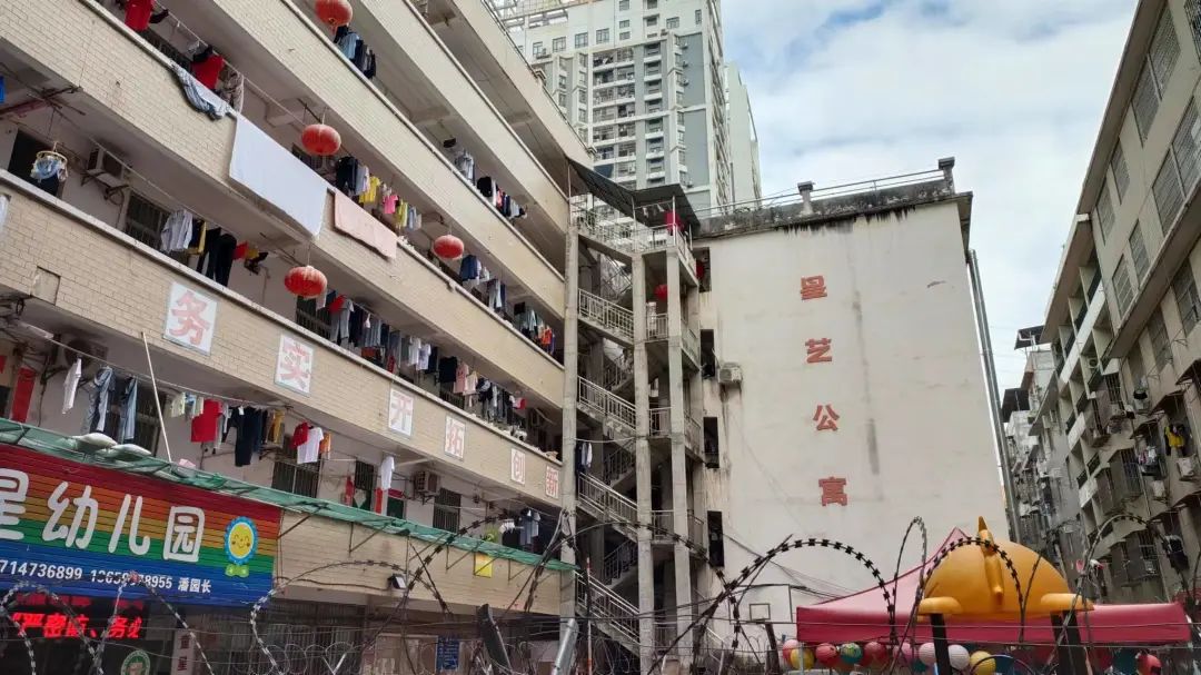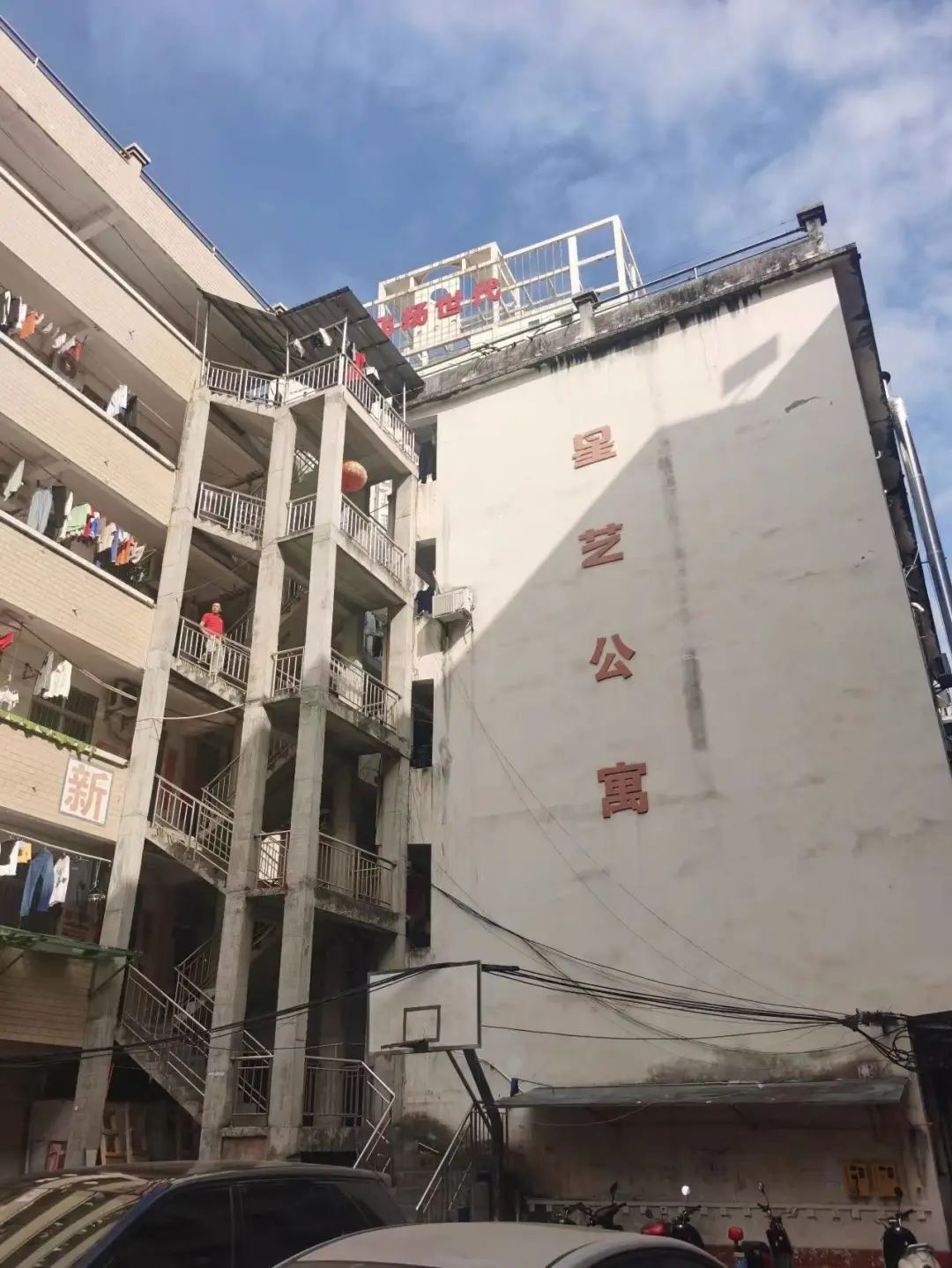 循童聲前往,見(jiàn)遠(yuǎn)處一棟樓的外墻上有“星藝公寓”4字。一樓幼兒園里孩子們的歡聲笑語(yǔ)與之相伴。“之”字形老式步梯連接兩棟樓,公寓樓總體呈“U”形合抱狀。公寓樓共5層,一樓設(shè)倉(cāng)庫(kù)、食堂、工程部辦公室、材料部辦公室、財(cái)務(wù)辦公室、籃球場(chǎng)(現(xiàn)有一半被用作幼兒園)等,樓上則住人,居住者均為南寧星藝人及其家屬。