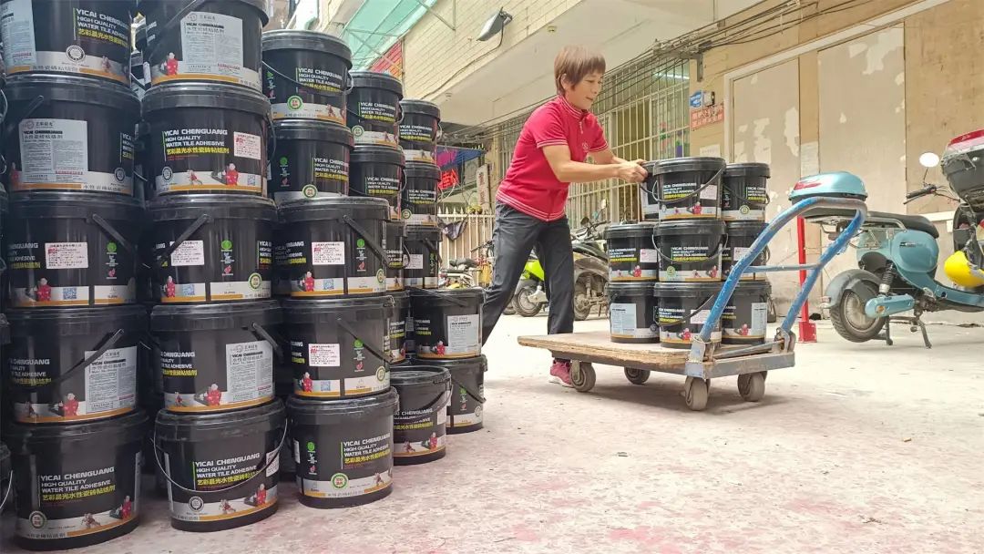 倉(cāng)庫(kù)主要儲(chǔ)存水電材料、乳膠漆、膩?zhàn)臃邸⒋纱u膠、裝修輔料等。瓷磚等裝修主材則直接從廠家配送到工地,不經(jīng)過(guò)這里。在倉(cāng)庫(kù)門(mén)口,不時(shí)有車(chē)輛??浚b運(yùn)即將配送到工地的相關(guān)材料。倉(cāng)庫(kù)貨單柜上一格一格地標(biāo)注著項(xiàng)目經(jīng)理的名字,而格子里,則是他們所管工地的材料出貨單,密密麻麻。
