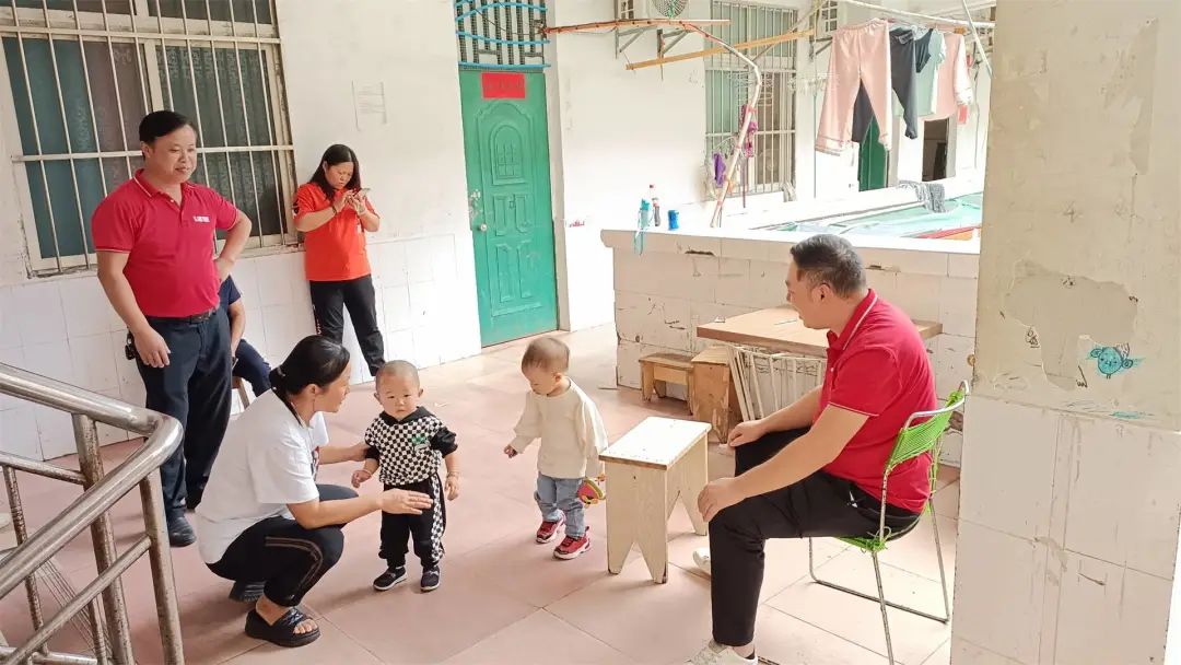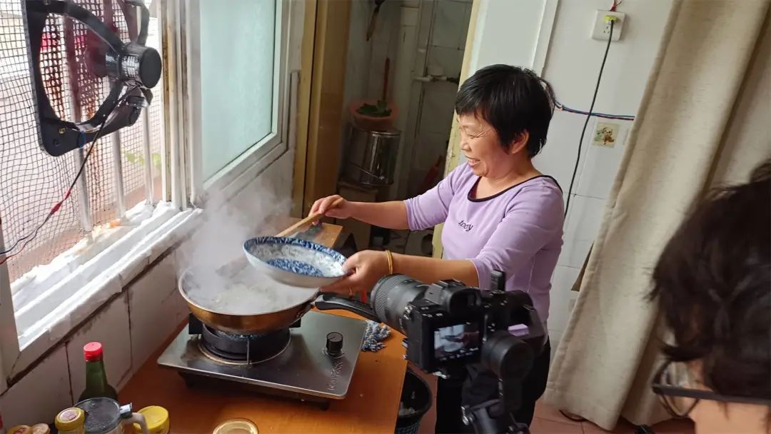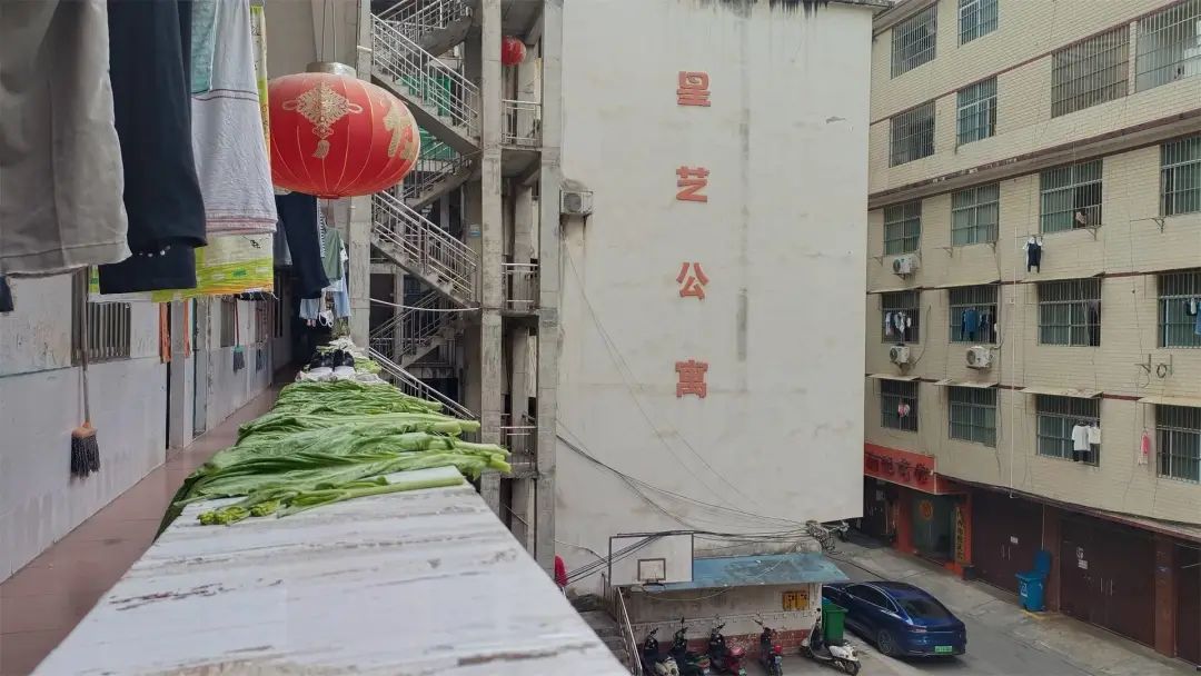 上午9時(shí)許,食堂內(nèi)就已經(jīng)很忙碌,各種備菜擺滿(mǎn)柜臺(tái),10時(shí)50分前就要出餐。臨近中午,二樓以上的煙火味漸濃。走廊上,星藝家人趁著日光尚好,在護(hù)欄上曬白菜,即將腌酸做成美味;廚房里,一名星藝員工家屬正在炒菜,魚(yú)味辣香頗有老家江西味道;公寓拐角的休閑區(qū),身著工服的星藝人與剛學(xué)會(huì)走路的孩子逗趣,教“星二代”如何敬禮。