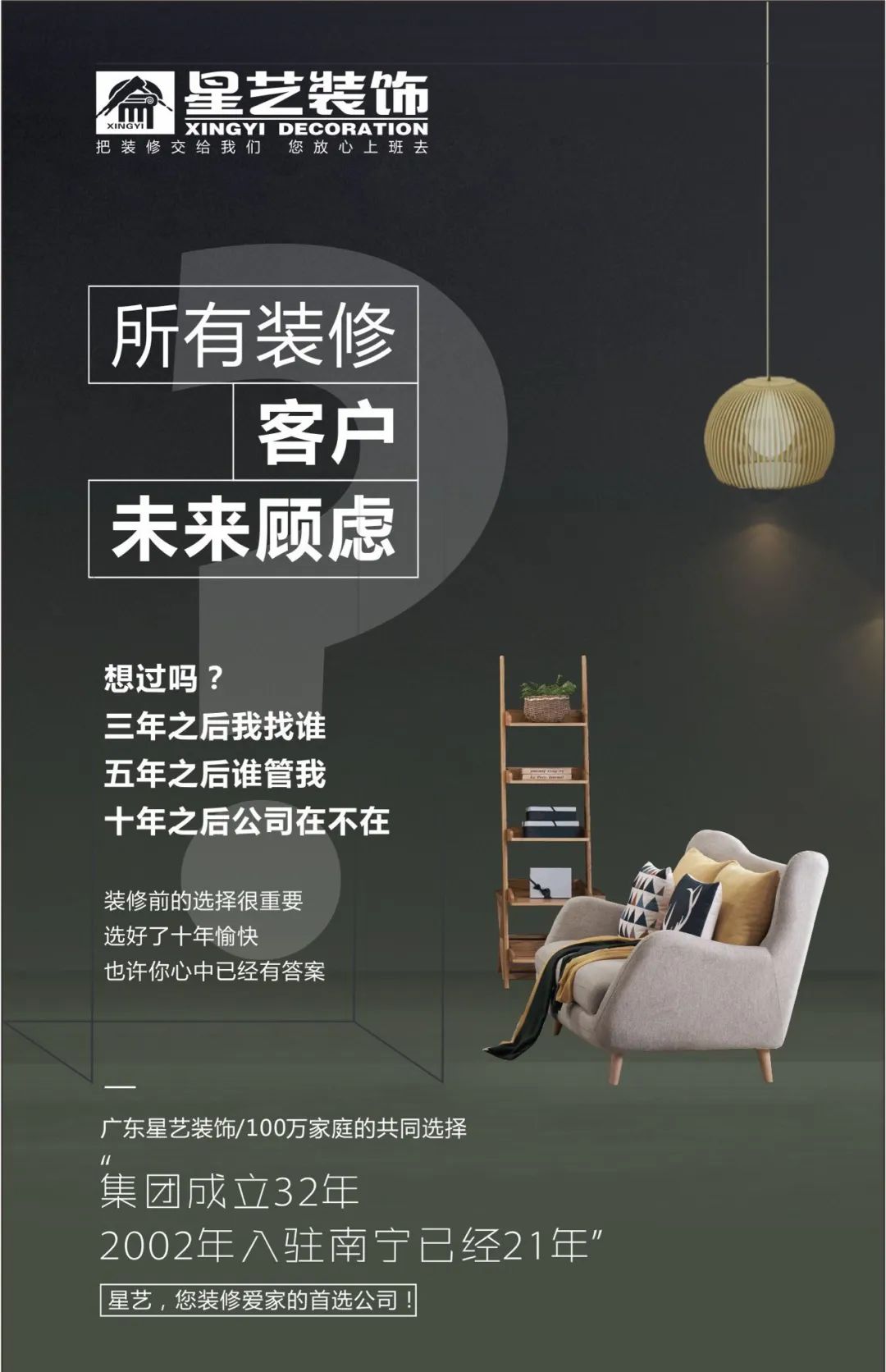 歷經(jīng)二十天的回訪與服務(wù),許多新老客戶真切感受到星藝裝飾令人感動(dòng)的售后保障,2002年入邕,始終秉持“客戶至上“的經(jīng)營理念,為廣大客戶朋友帶來有品質(zhì)、有保障的家裝設(shè)計(jì),深耕邕城21年,熱忱服務(wù)21年,選擇星藝裝飾,選擇品質(zhì)家裝好服務(wù)。