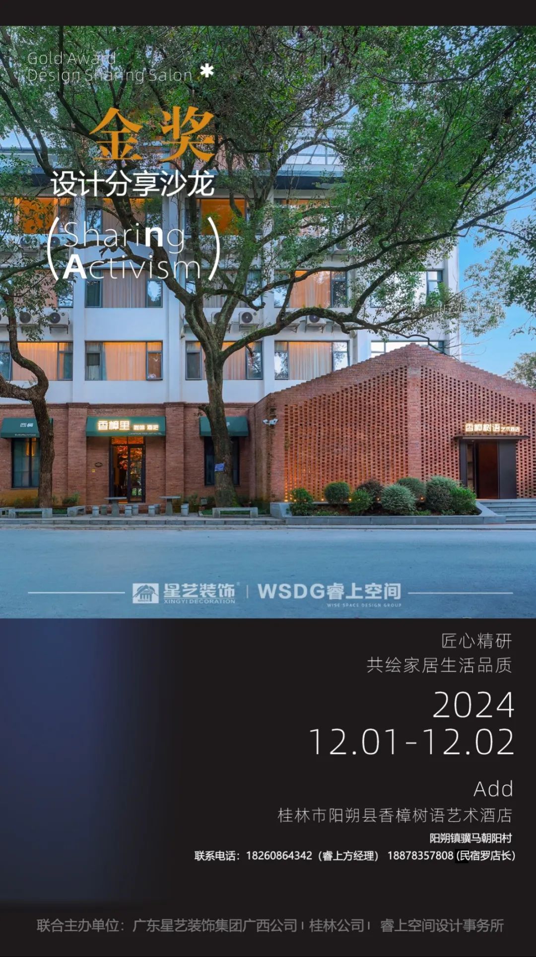 12月1日—3日,廣西區(qū)域金獎設(shè)計分享沙龍在桂林陽朔-香樟樹語藝術(shù)酒店圓滿收官,一場關(guān)于設(shè)計空間領(lǐng)域的思考與探討.