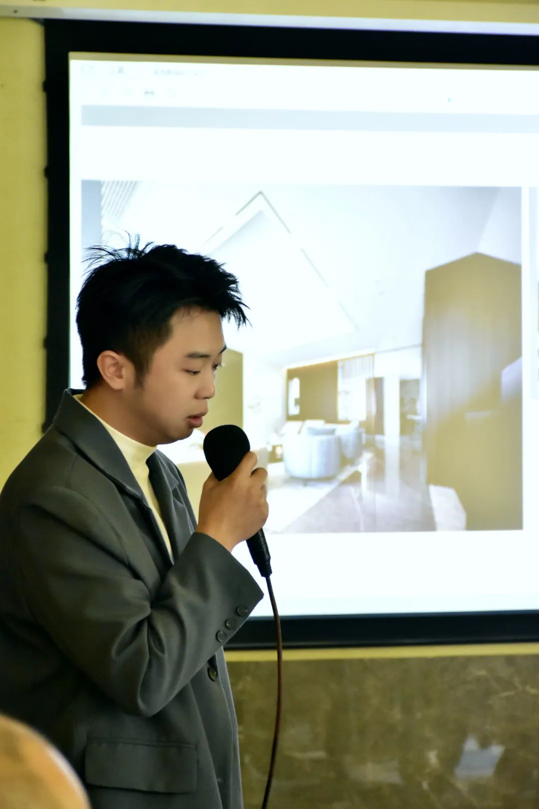 星藝廣西區(qū)域總監(jiān)徐橘致辭,徐總就當下行業(yè)發(fā)展趨勢,提出不斷學習“新趨勢”、“新工藝”“新材料”“新設(shè)計”等要求,并強調(diào)此次分享會的重要意義。